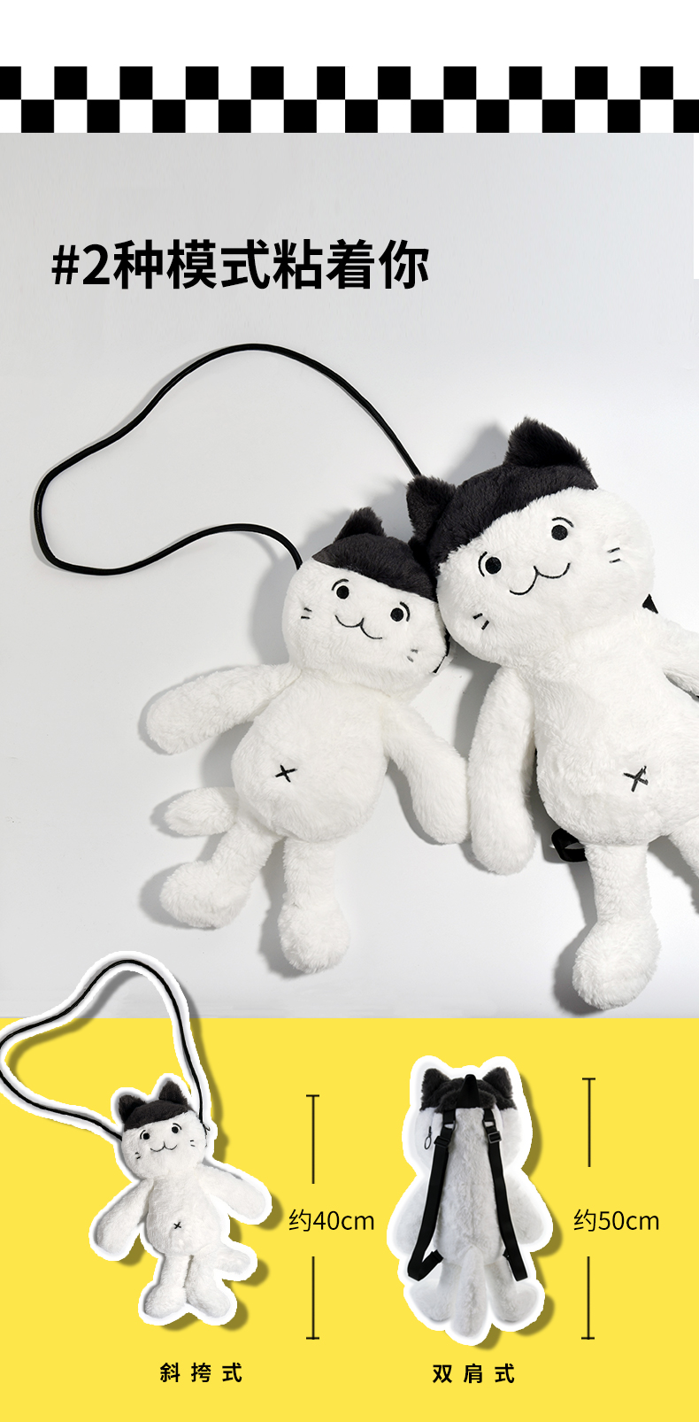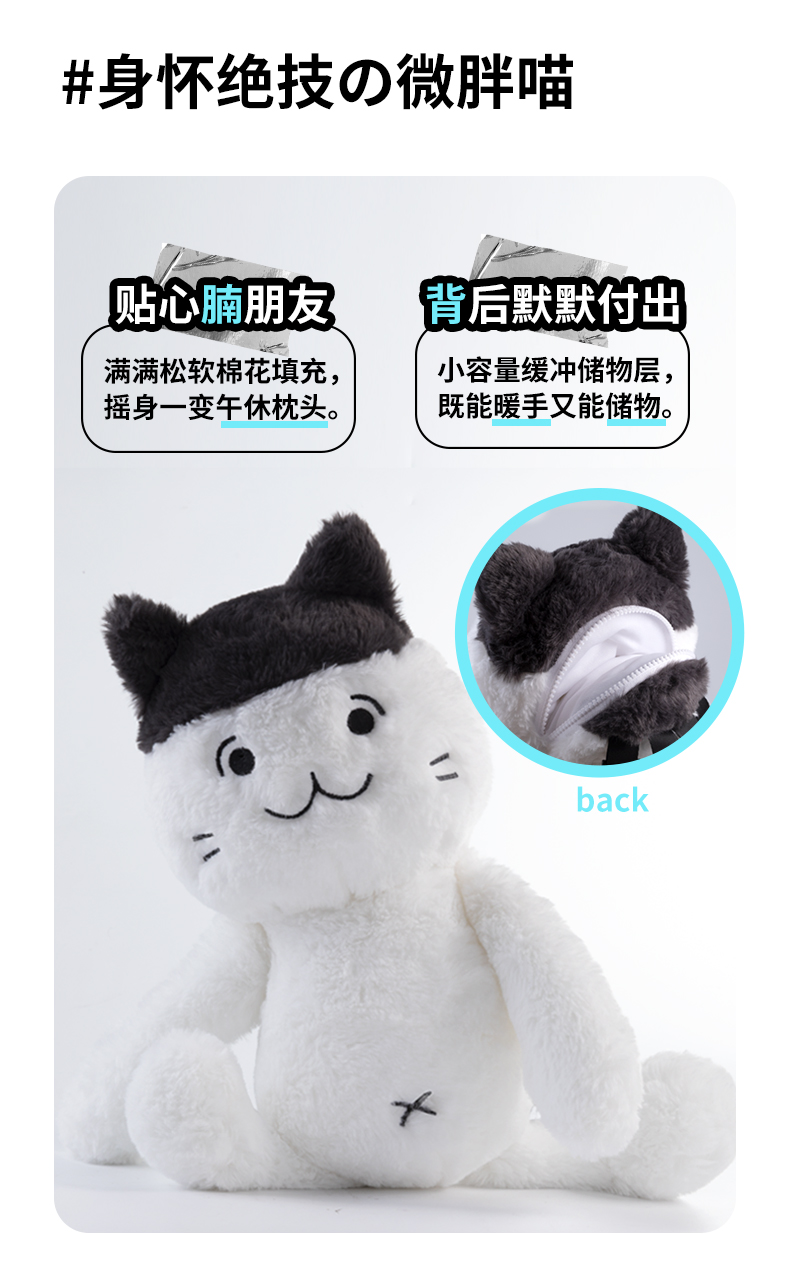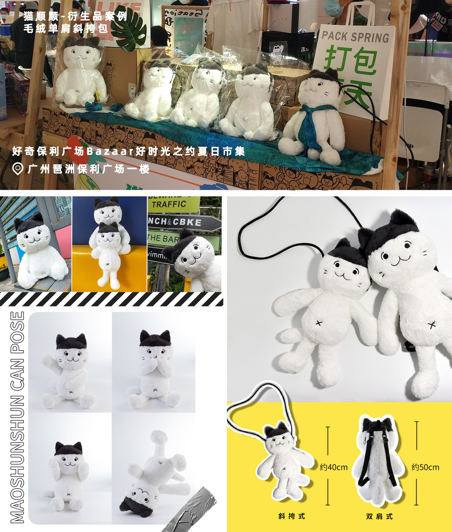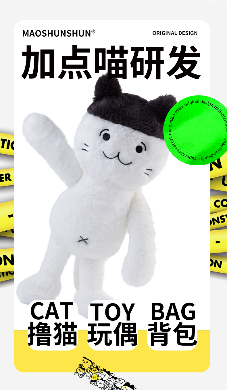 推出加点喵工作室多人合作设计出猫顺顺衍生品-猫顺顺毛绒单肩包和双肩包,