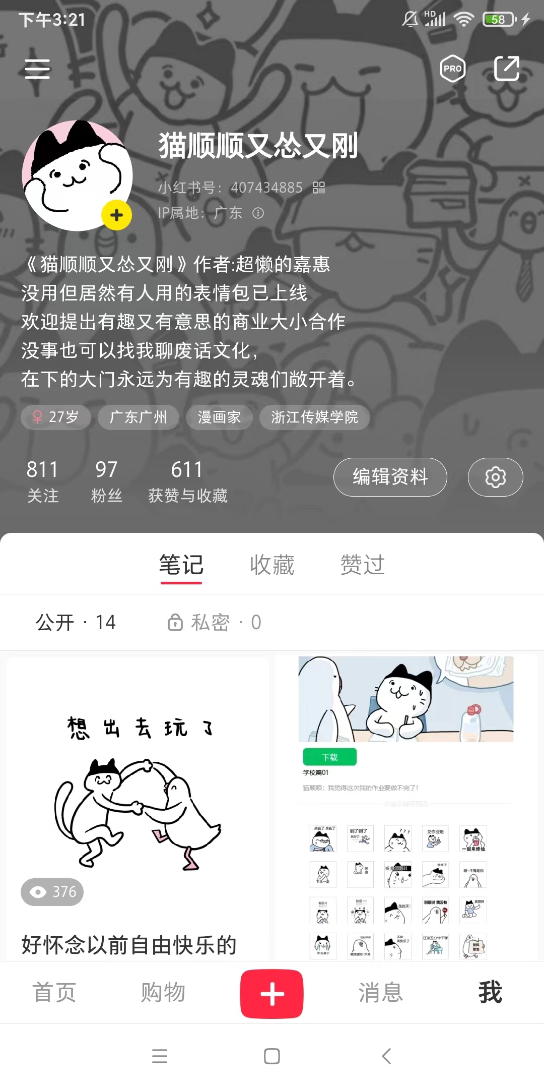 IP推广平台——小红书官方账号《猫顺顺又怂又刚》