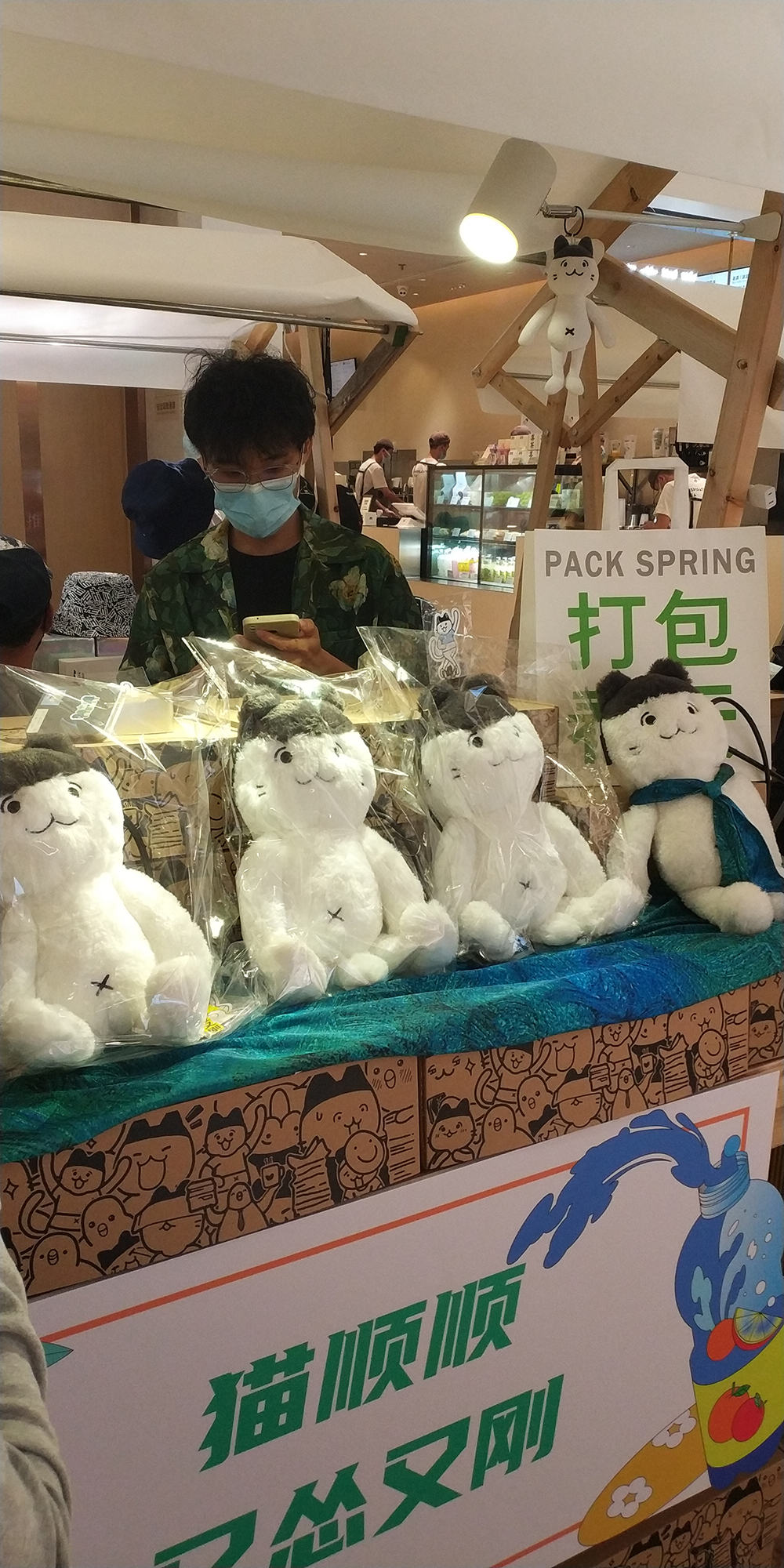 通过在市集消费集章可以获得抽奖机会免费得到一只猫顺顺毛绒包包,以此回报粉丝们的热情支持,并且也提高了市集的人气和热度。