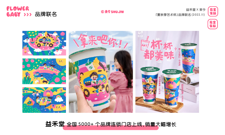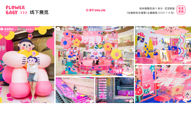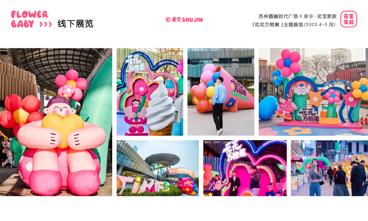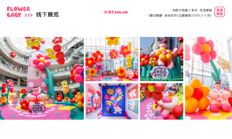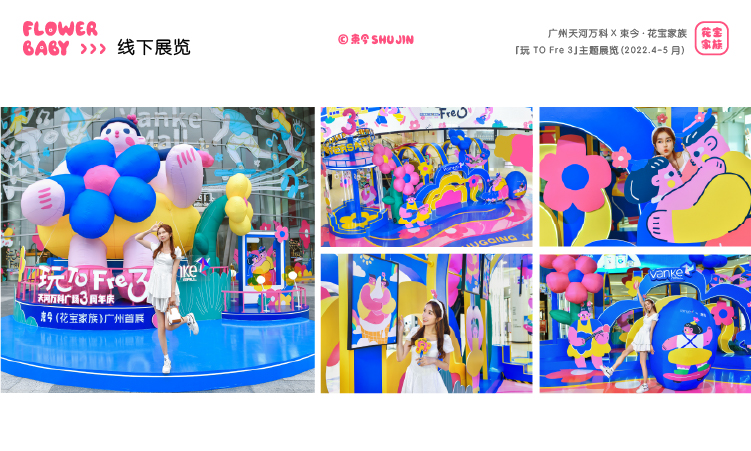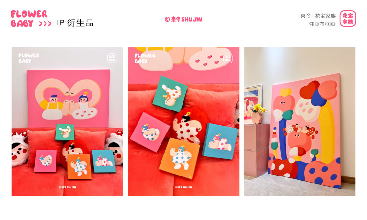 - IP介绍:花宝家族作为艺术家束今创作的插画IP作品,诞生于2021年,以糖果般的色彩、浪漫有趣的创作风格,表达一种简单、自由、积极、快乐的生活态度,传递着爱与美好。在全国多个城市空间举办主题展览,与各品牌达成联名合作,成为具有商业与艺术价值的插画IP。