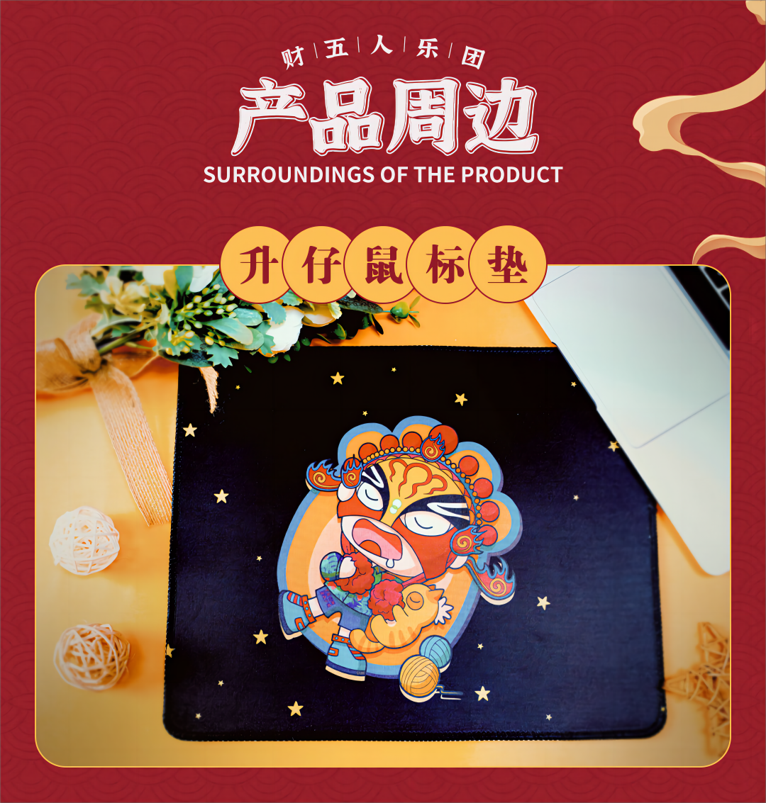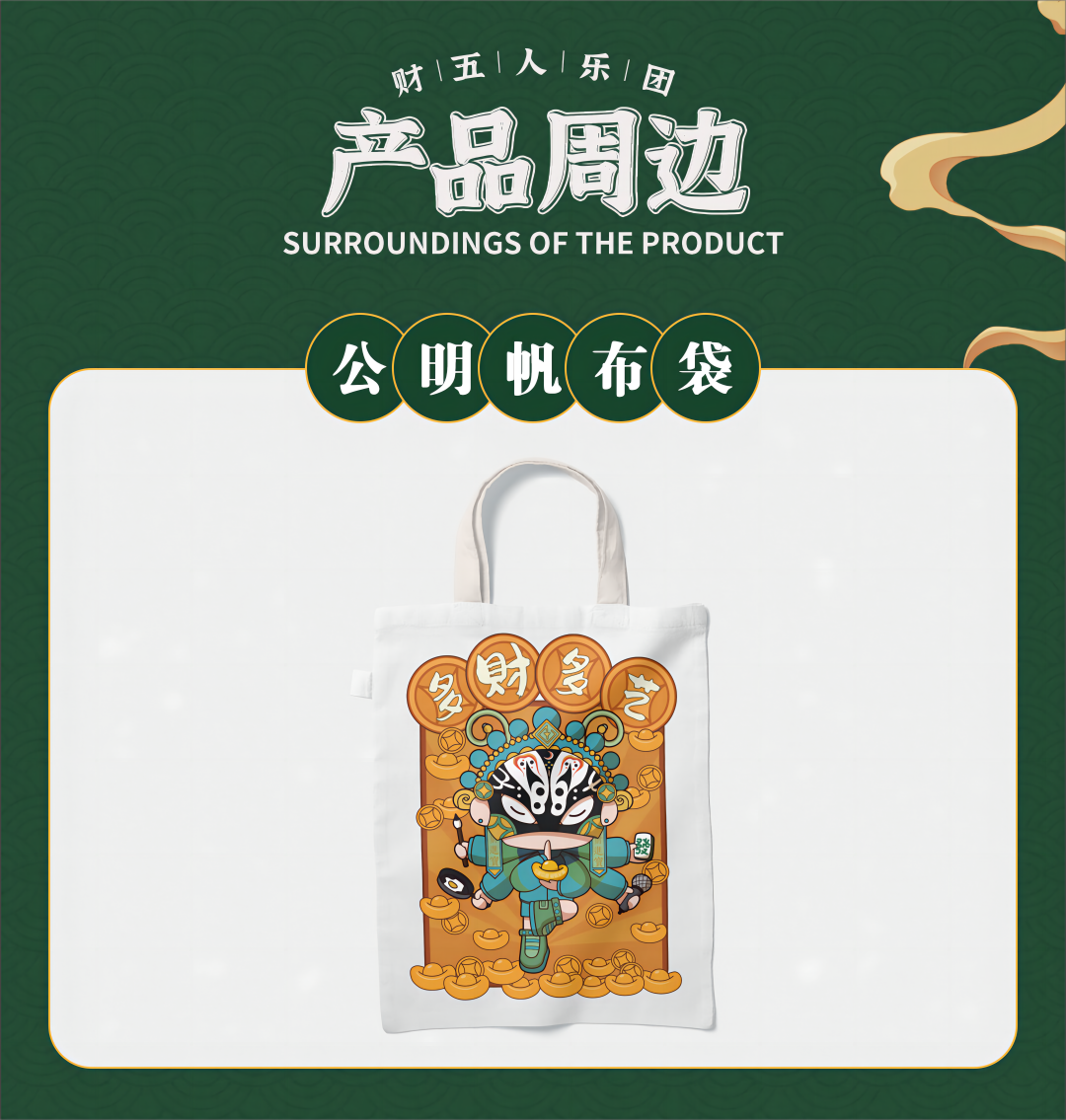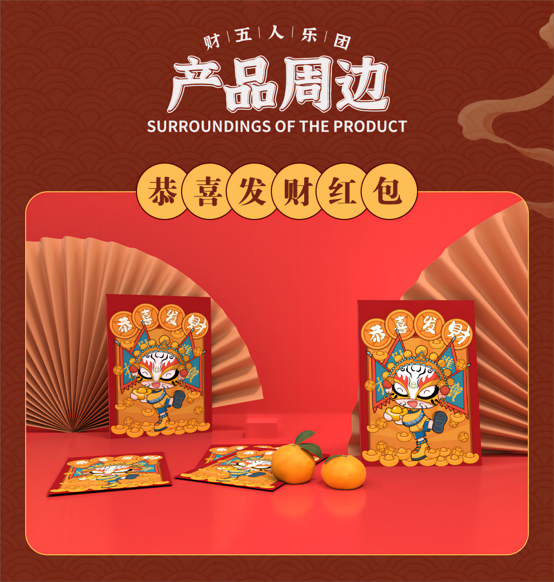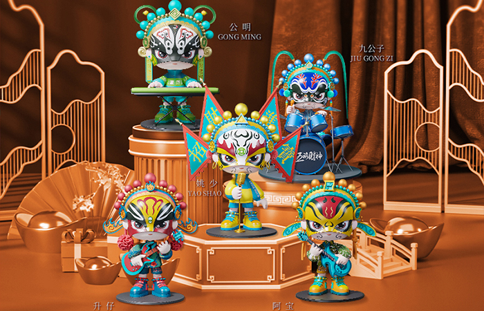 XECS REVS聚喜时代本着创意的精神,以《封神演义》五路财神背景和戏曲脸谱为创作灵感,利用潮玩理念进行全新升级,打造了聚国潮IP —【财五人乐团】,他们分别是公明、升仔、阿宝、九公子、姚少。