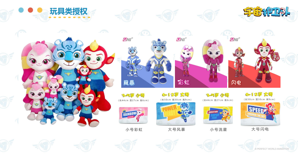 《宇宙护卫队》是完美世界控股集团旗下动画公司完美鲲鹏为4-7岁的小朋友精心打造的一部三维动画系列作品。故事围绕着老虎“风暴”、猴子“闪电”、兔子“彩虹”、小猪“闪电”四位宇宙护卫队队员们展开。他们乐于助人,帮助不同的小动物们解决各种各样的困难。每集涵盖了动物特征、生活习性、科学小常识等知识点,鼓励孩子们在探索中不断成长。