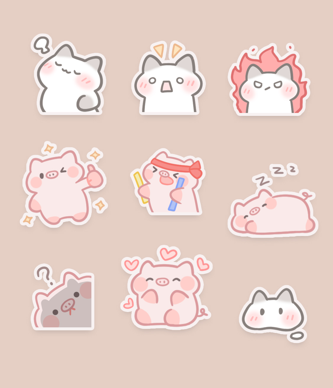 小队中有可爱的粉色小猪猪和一只白色小猫