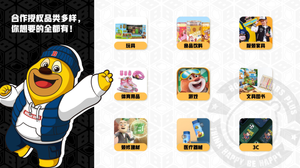 《熊出没》是由华强方特(深圳)动漫有限公司制作的原创动画系列作品。 截至目前,共合作被授权商超过300家,合作品类包罗食品、玩具、家居建材、3c等各行各业,IP授权商品年销售额超过35亿元。