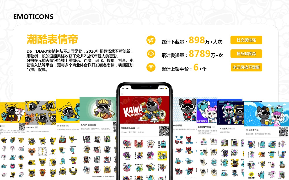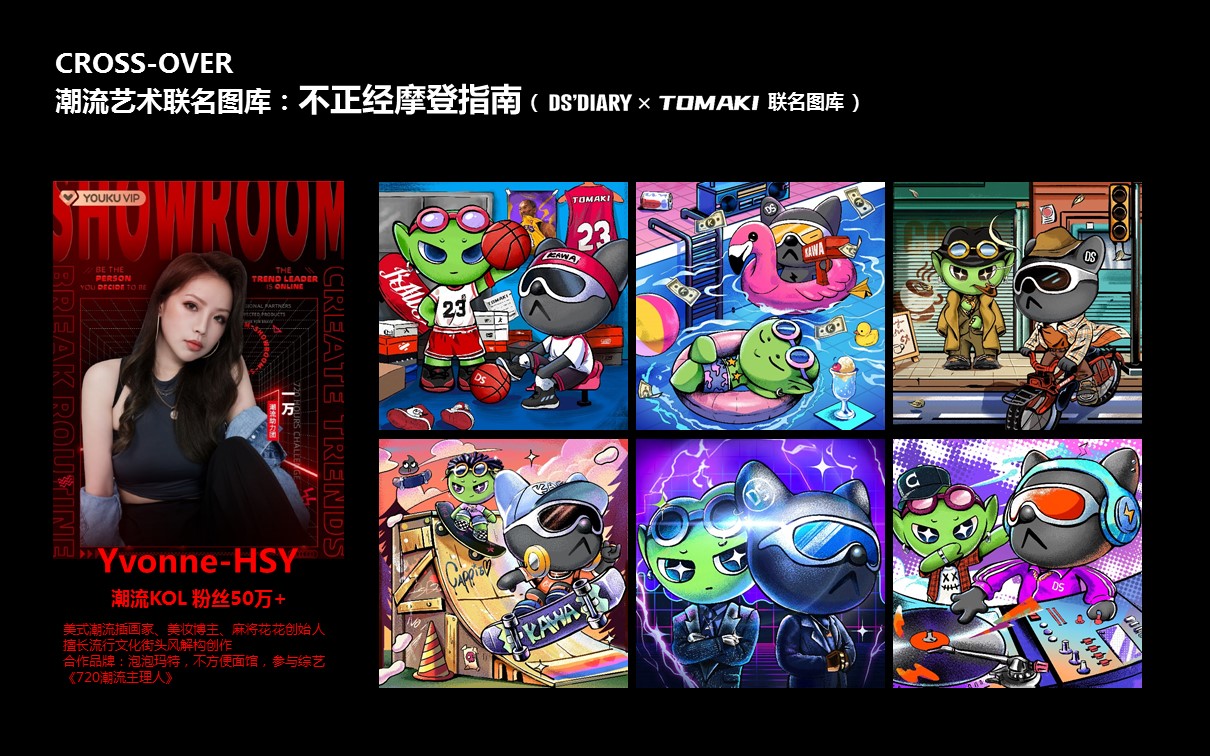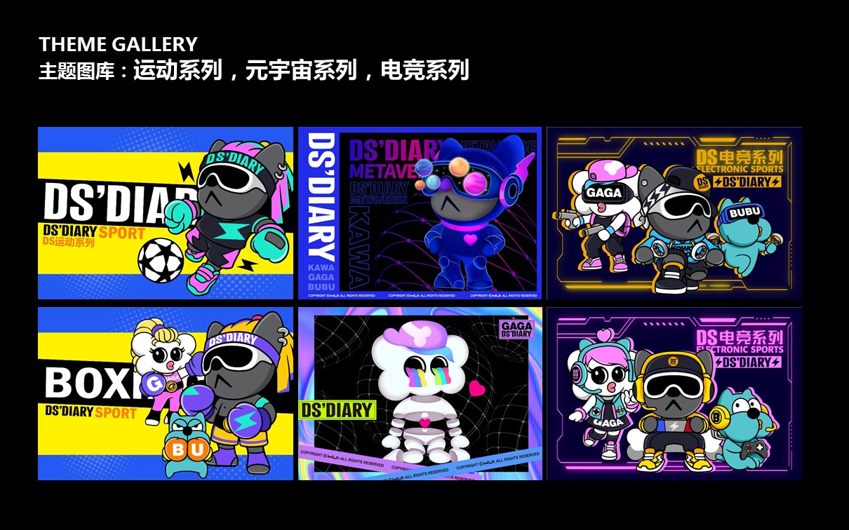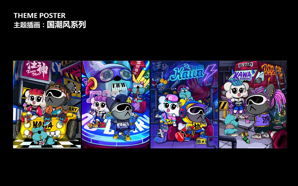 原创艺术潮玩IP【DS'DIARY狗狗日记】,2021年玉猴奖“十大最具商业价值国潮IP”。DS’专注打造代表中国Z世代的时尚国潮美学系统,宣扬“打破思维禁忌”的精神。集“萌、酷、贱、趣”于一身,家族角色自带话题属性。2021年累积曝光量超5500万。