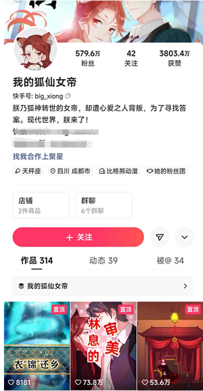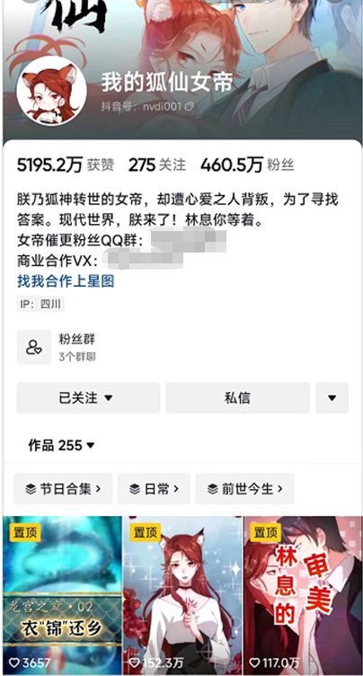 苏狸前世是狐神转世的女帝,却遭心爱之人背叛,为了寻找答案,穿越到现代,却在现代找到了跟前世夫君长相一样的林息。为了复仇,苏狸潜入林息公司当秘书,多次使用计谋。在一次次纠葛中,摩擦出来不一样的火花,背后的秘密也逐渐浮现水面。 数据 于2020年3月28日在抖音 快手 同步上线,已入驻企鹅号,上线一个月就在抖音粉丝量突破百万,并在抖音平台达到三月充能计划潜力榜第2名,四月产能能力计划总榜前十。 现已是短视频平台千万粉丝量级大号,并且粉丝年龄段多集中于6~23岁,高活跃度、高消费能力的粉丝属性也代表着改ip拥有了极高的变现能力。