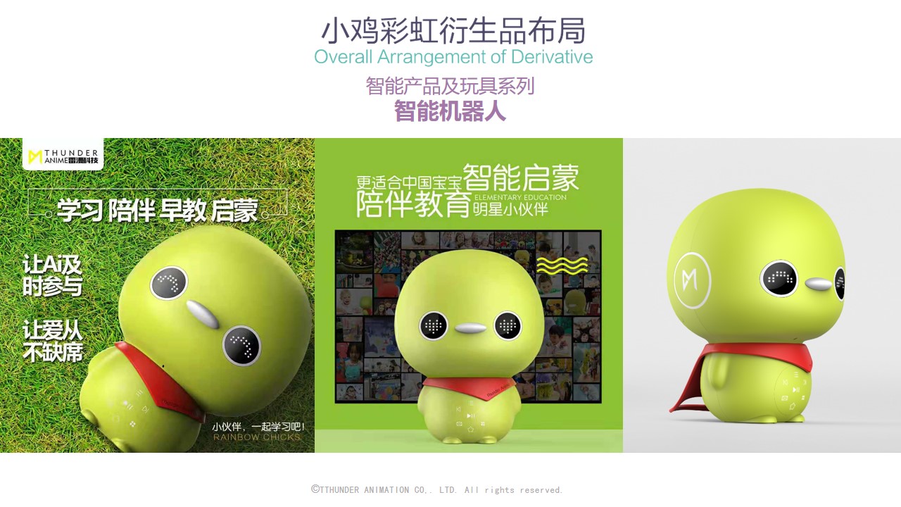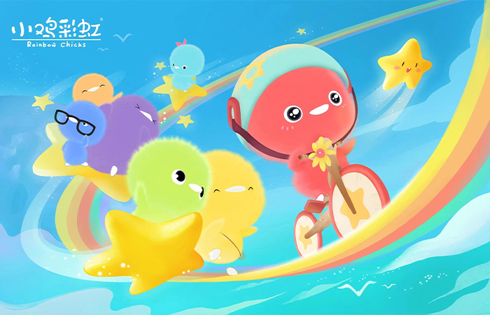 《小鸡彩虹》是一部彩色水墨风动画片,它填补了国内2-4岁的幼儿动画空白,它讲述了七只彩虹色的小鸡在云岛生活和成长的故事。截止目前已上线了8季共126集,在全球获得了超过60亿次的播放,受到国内外家长和小朋友的喜欢。