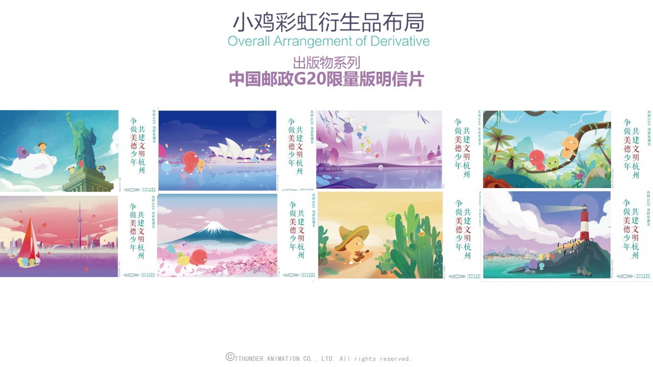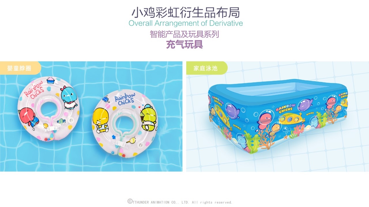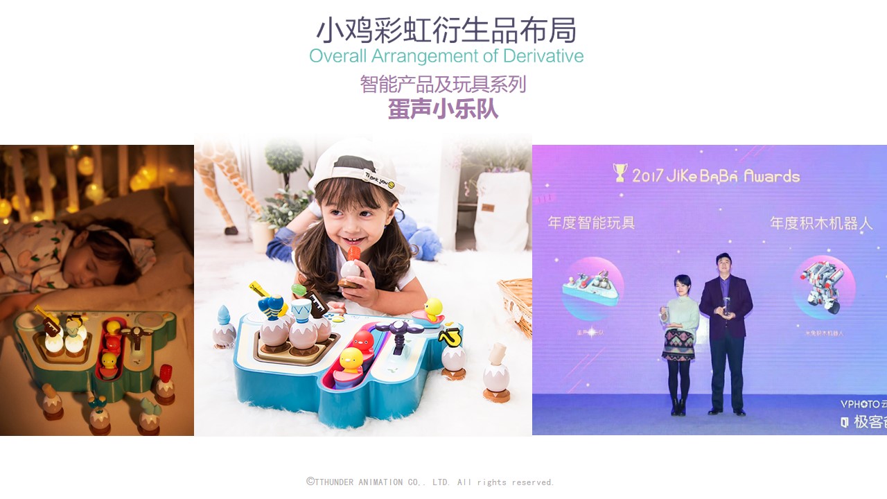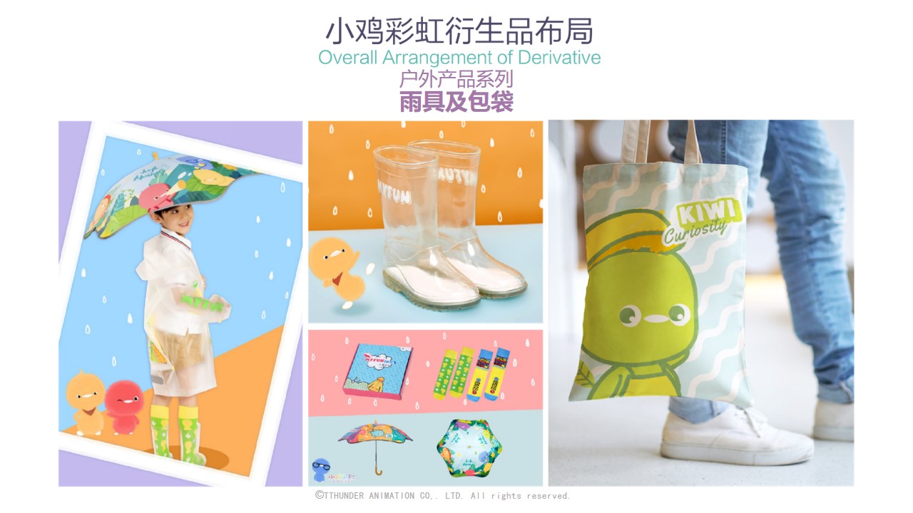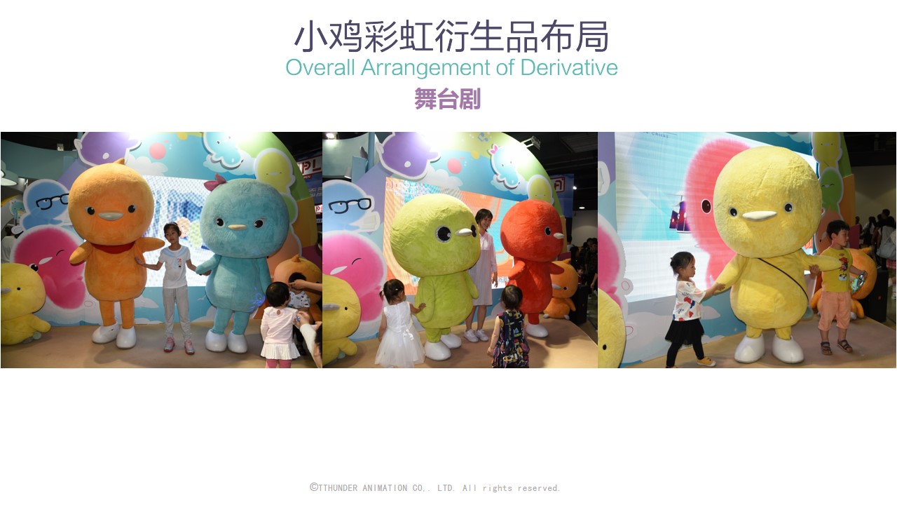 截至目前为止,小鸡彩虹授权合作的品牌近百家包括万事利,水晶家纺,必胜客等,衍生品品类达150种。