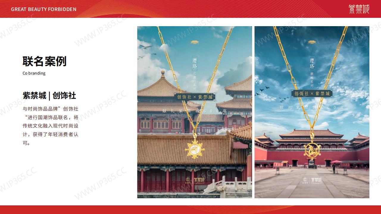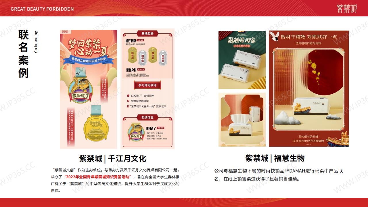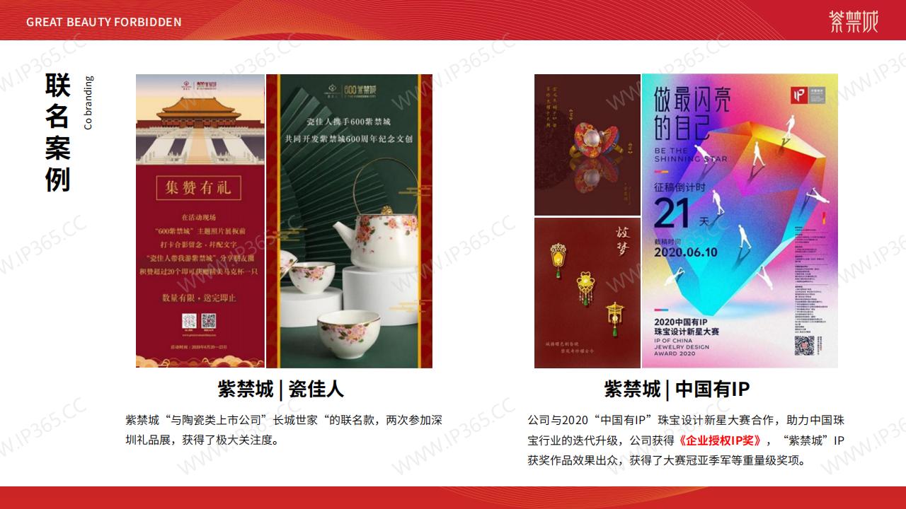 紫禁城是中国古代帝王的宫殿,是中国历史文化遗产中的重要代表之一。作为一个具有深厚历史与文化底蕴的IP形象,紫禁城的品牌价值与美誉度远远超出了中国。 紫禁城的IP授权在国内外市场均有广泛的应用,尤其是在文化创意领域中,紫禁城IP形象被引入到各类产品设计中,包括文化衫、手表、文具、茶具、餐饮等多种领域中。 目前,紫禁城IP授权拥有广泛的商业发展前景,包括文化旅游业、文化产品销售、文创设计等各个领域。随着中国文化软实力的不断提升,紫禁城IP授权的商业价值也将不断地增加。 如果您想将紫禁城的IP形象引入到您的商业领域中,欢迎与我们联系,我们将会为您提供**化、最专业的IP授权服务,以期打造***、最具价值的紫禁城IP形象。