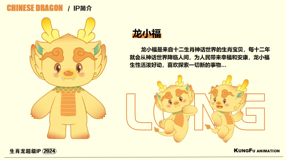 CHINESE DRAGON /IP简介 生肖龙超级IP 2024 龙小福 龙小福是来自十二生肖神话世界的生肖宝贝,每十二年就会从神话世界降临人间,为人民带来幸福和安康,龙小福生性活泼好动,喜欢探索一切新的事物…